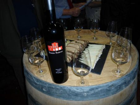 Vin muté sur grains. Robe presque noire. Nez fruité, épicé, bel équilibre, vin droit s’accordait bien avec le fromage de chèvre