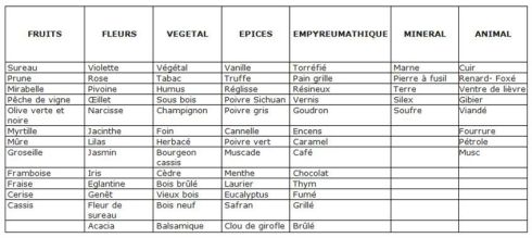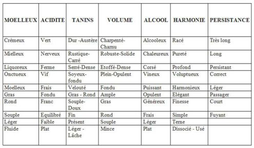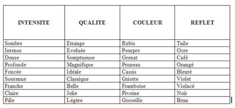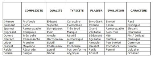 Fiche de dégustation des vins rouges / exemple de vocabulaire