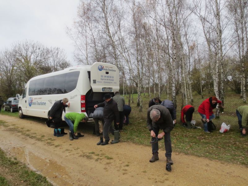 Nous partons en bus vers la truffière, nous nous équipons de bottes et bonnet brr, brr !!!