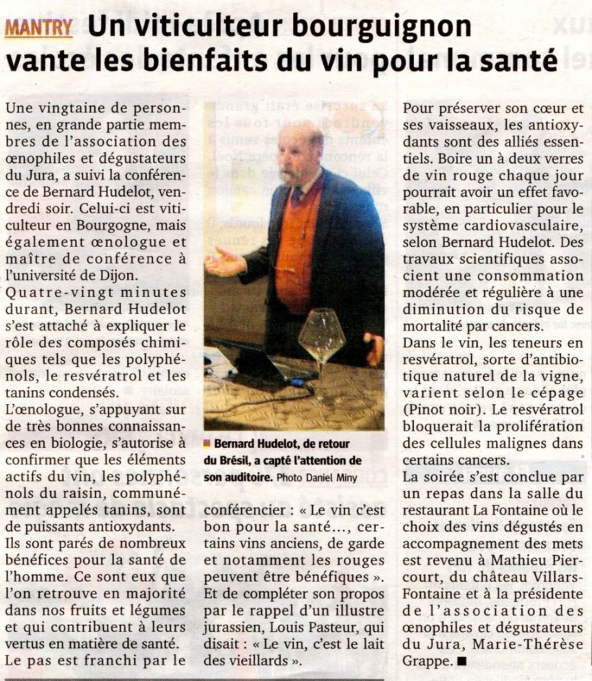 Conférence sur le VIN & la SANTE par Bernard Hudelot