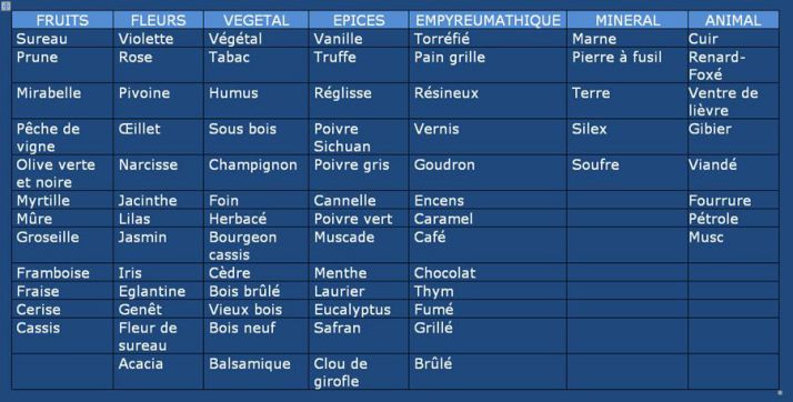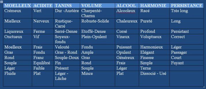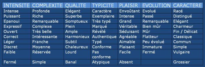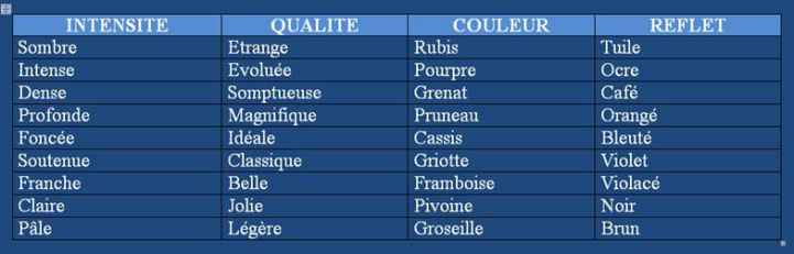 Fiche de dégustation des vins rouges / exemple de vocabulaire